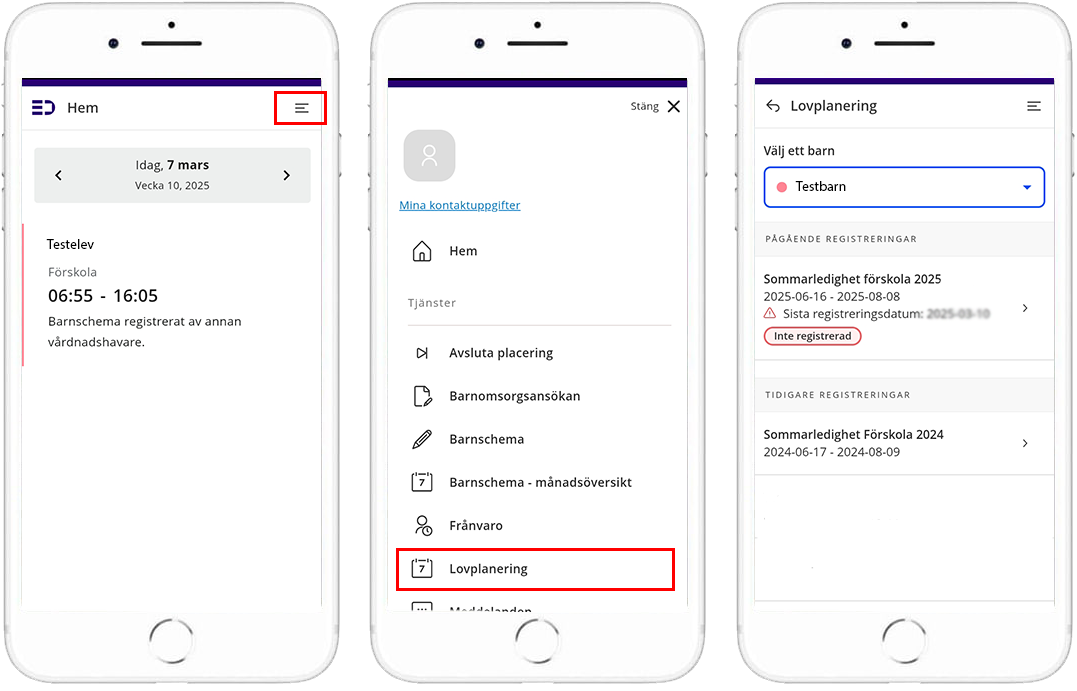 Öppna appen Edlevo och gå till Lovplanering i menyn.