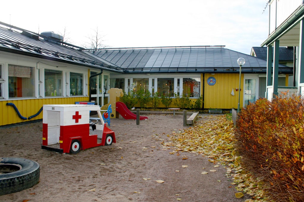 Förskolan består av ett gult hus och ett grönt hus. I det gröna huset finns Humlan, som har öppet kvällar, nätter och helger.