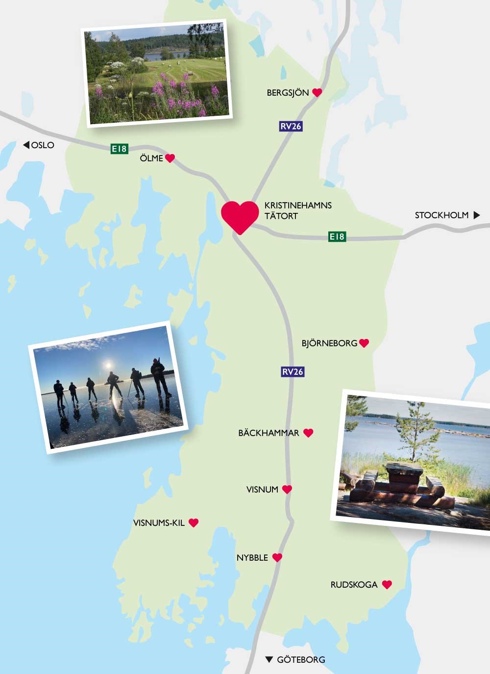 Omkring 15 kilometer norr om Kristinehamn längs med riksväg 26 ligger den gamla kulturhistoriska bygden Bergsjö. Vandringsleden Järnleden finns längs västra sidan av Bergsjön, leden tar dig genom spännande kulturhistoria och varierande natur. Vid Bergsjön finns vårt största vattenverk Sandköping, vattenverket levererar dricksvatten till både Kristinehamns centralort, Ölme och Björneborg.