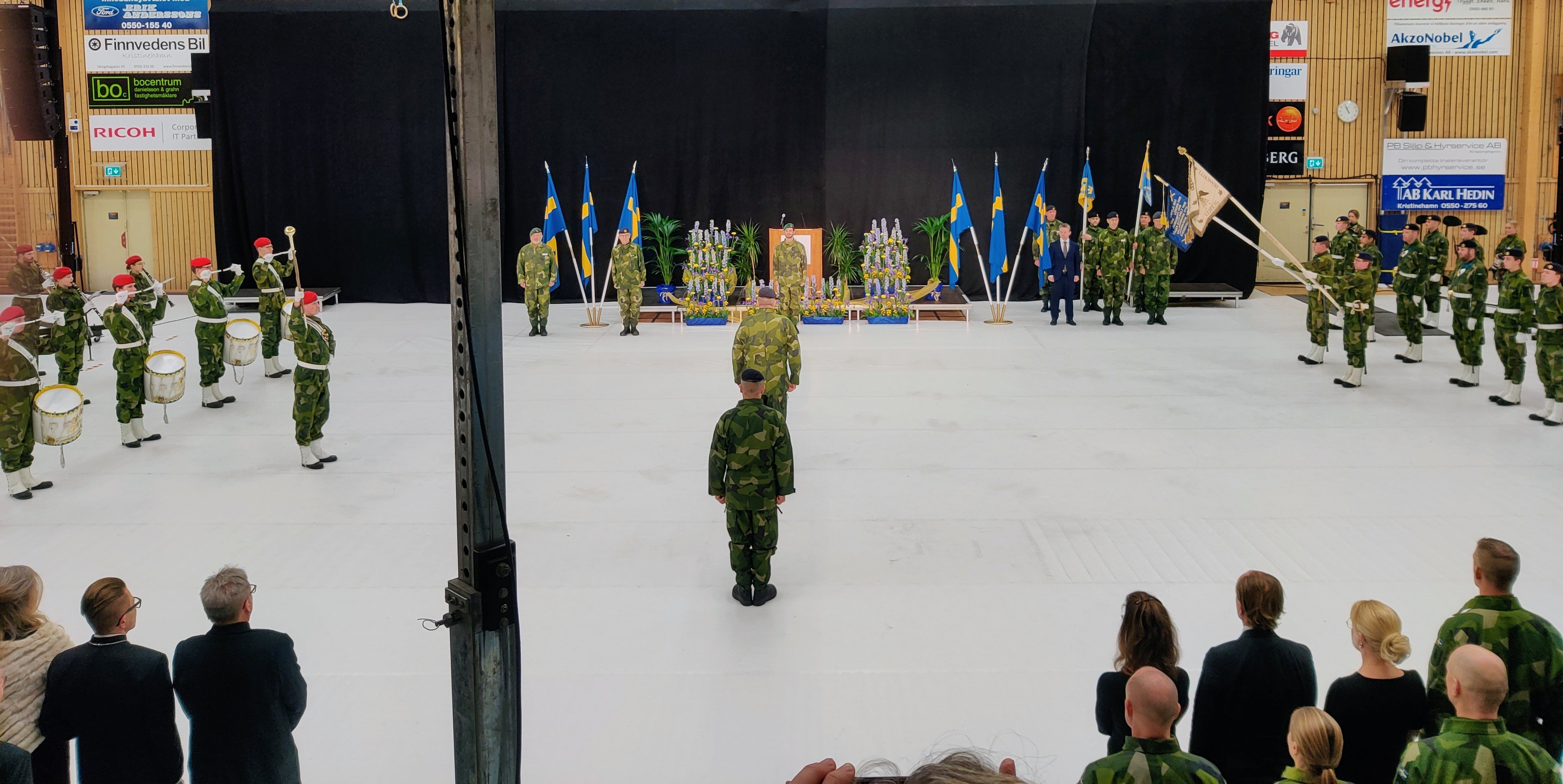 Med de orden förrättade H.K.H. Prins Carl Philip invigningen av A 9 inför en fullsatt publik i Brogårdshallen. Till tonerna av Arméns musikkår och svenska fanor som bakgrund återlämnades A 9:s standar från Bodens artilleriregemente, A 8.