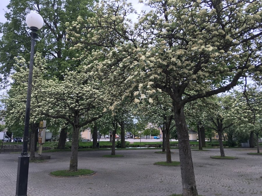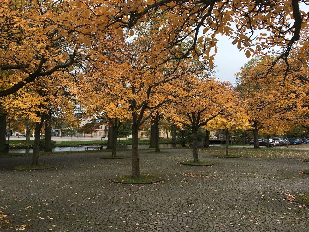 Till parken och torget hör också en oxelplantering som är vacker såväl i blomning som i höstskrud. De stora träden i vattenområdet speglas vackert i vattnet kvällstid. Parken genomgår en förändring, bland annat med ny belysning och trädäck, i samband med ombyggnation av torgen 2020-2021.