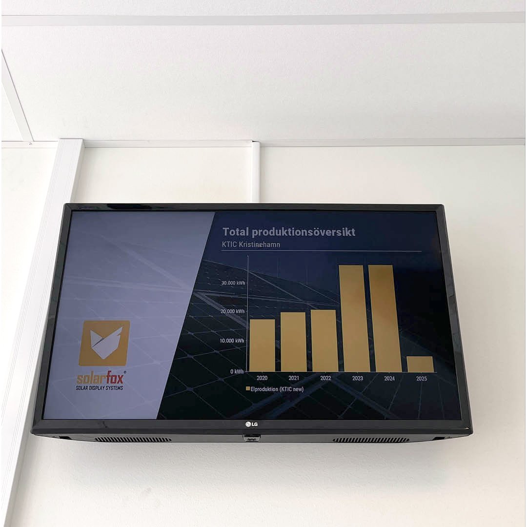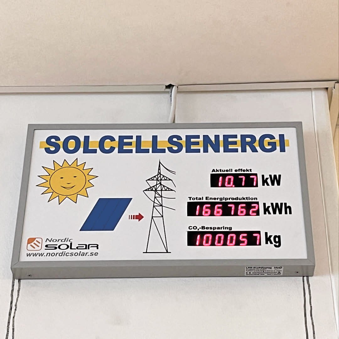 I skolan finns digitala tavlor där både elever, personal och besökare i realtid kan följa hur mycket solel som produceras, både för dagen, månaden och under året.