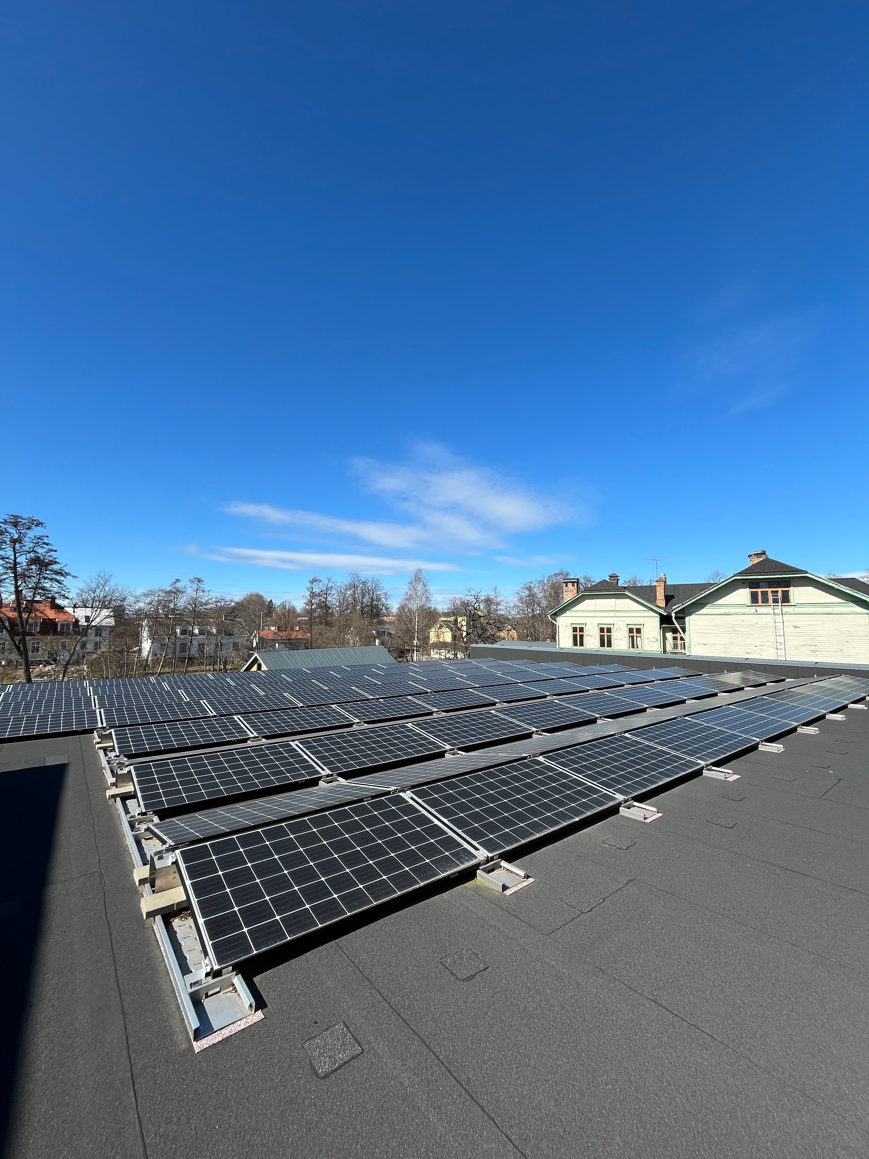 Satsningen på solenergi är en del av Kristinehamns kommuns strategiska mål om grön omställning. En av verksamheterna som jobbar hårt för att minska klimatavtrycket är Brogymnasiet. På taken och i lokalerna finns nämligen både gamla och nya tekniska lösningar som samverkar för att öka energieffektiviteten.