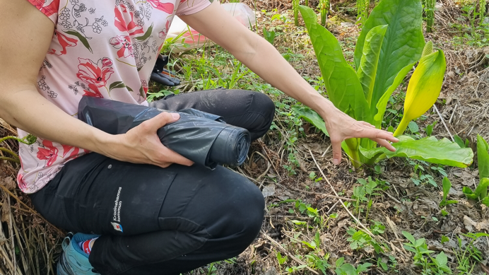 Växterna ska slängas på återvinningscentralen Strandmossen. Tänk på att packa in växterna ordentligt, gärna i dubbla soppåsar som du knyter ihop väl. På Strandmossen finns en avsedd plats för invasiva arter. Fråga personalen om hjälp så visar de dig rätt. Du ska inte slänga invasiva arter bland övrigt trädgårdsavfall.
